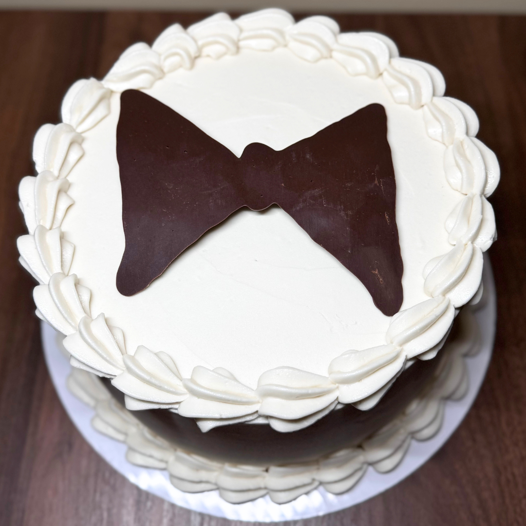 Partake in the ultimate treat with 'Stay Classy', a decadent jumbo cupcake made with rich chocolate and topped with light vanilla buttercream. Adorned with a black bow tie, this cupcake is the perfect balance of sophistication and indulgence. Don't mind if you do!